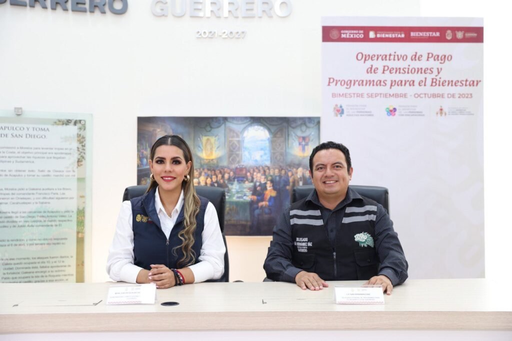 La gobernadora Evelyn Salgado Pineda y el delegado de los Programas para el Bienestar en Guerrero, Iván Hernández Díaz, han anunciado el inicio de los pagos de los programas federales de pensión para adultos mayores, personas con discapacidad y de apoyo para niñas y niños hijos de madres trabajadoras en Guerrero. Esta acción representa una inversión superior a los mil 800 millones de pesos y logra bancarizar al cien por ciento la entrega directa de estos recursos sociales.