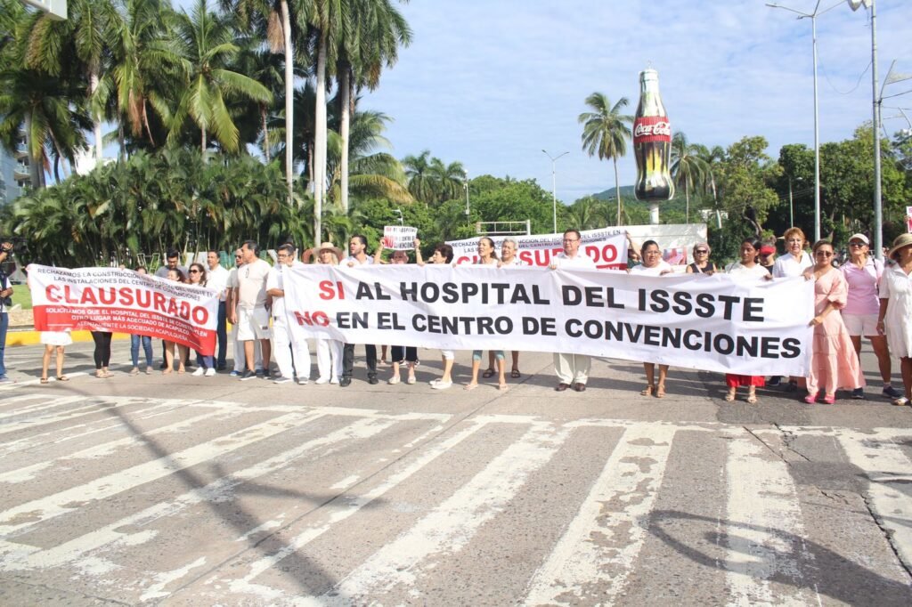 ACAPULCO. —Por tercera ocasión, colonos del fraccionamiento Costa Azul protestaron a las afueras del Centro Internacional Acapulco (CIA) para reiterar su rechazo a la construcción del Hospital del ISSSTE en Acapulco.