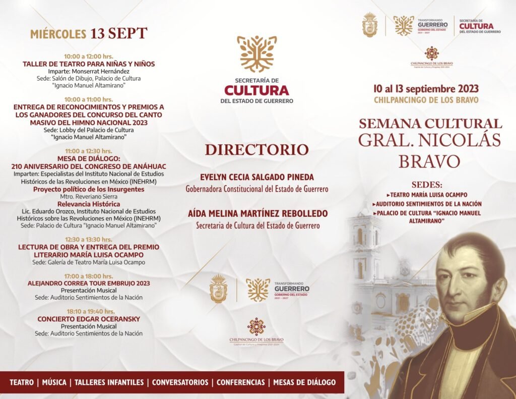 La Semana Cultural “Gral. Nicolás Bravo” representa una oportunidad única para honrar la memoria de este destacado personaje de la historia de México y disfrutar de un variado programa cultural en la hermosa ciudad de Chilpancingo, Guerrero.
