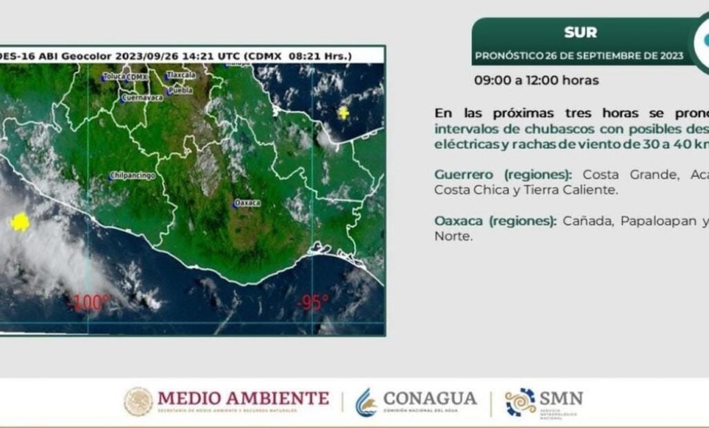 La presencia de un canal de baja presión al norte de Guerrero generará nubosidad y posibles precipitaciones moderadas, especialmente durante la tarde y noche.