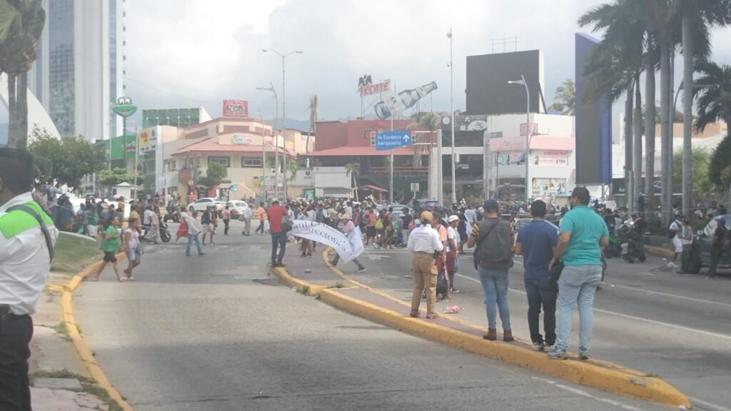 Cerca de 400 prestadores de servicios turísticos, vendedores ambulantes y personal de restaurantes de la zona de playas en Acapulco bloquearon completamente las avenidas Costera Miguel Alemán y Farallón, en la glorieta de la Diana, exigiendo a las autoridades estatales detener los operativos en la zona.
