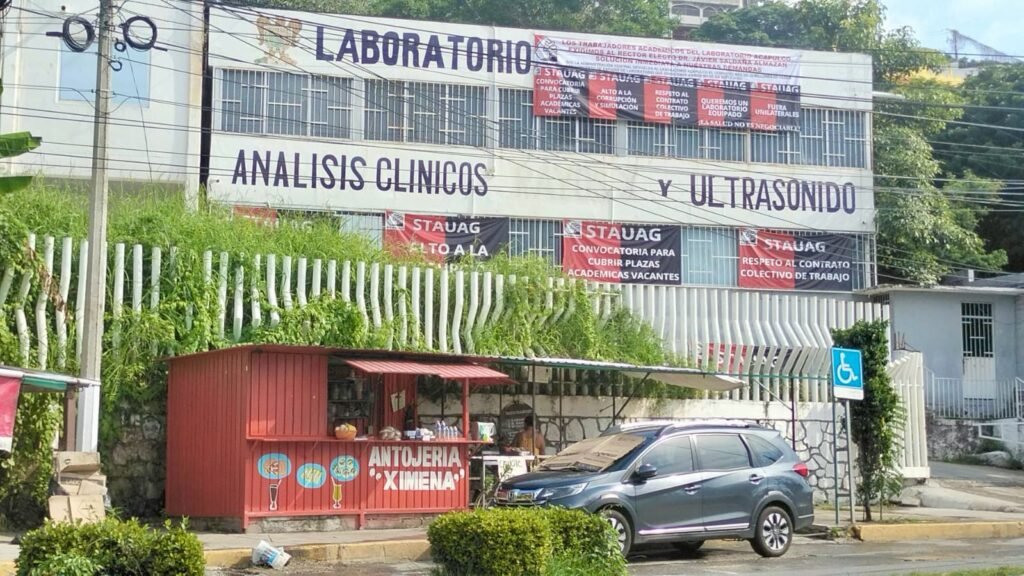Acapulco. —Trabajadores del laboratorio clínico de la Universidad Autónoma de Guerrero (UAGro) adheridos al Sindicato de Trabajadores Académicos de la Universidad Autónoma de Guerrero (STAUAG) se mantienen en paro de labores para exigir respeto a su contrato colectivo de trabajo.