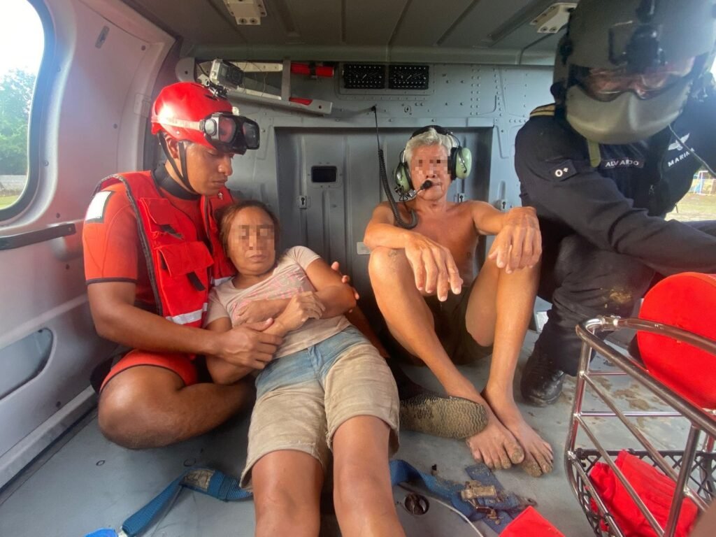 La primera operación consistió en el rescate de dos personas adultas, una mujer y un hombre, que quedaron atrapados en el ramal de un islote en el río Tecpan. El río experimentó un aumento considerable en su caudal debido a las intensas lluvias provocadas por la tormenta tropical. Para su rescate, la Armada de México desplegó un helicóptero tipo Panther con personal especializado en búsqueda y rescate. Una vez asegurados, las dos personas fueron trasladadas a una zona segura, donde recibieron atención médica de primeros auxilios por parte de Sanidad Naval y la Cruz Roja Mexicana. Posteriormente, fueron llevados a una unidad médica para una atención médica integral.