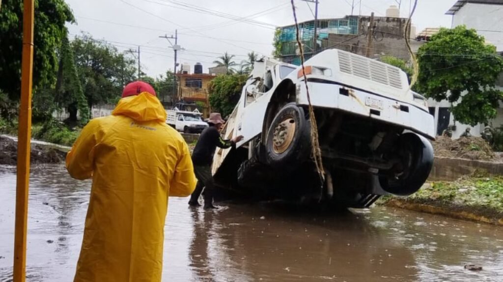 Otro mas se reportó en la zona de Renacimiento, se presentó un socavón en el punto conocido como el Canal del Perro lugar hasta donde llegaron autoridades Protección Civil Municipal, debido a que se había visto afectado un camión.