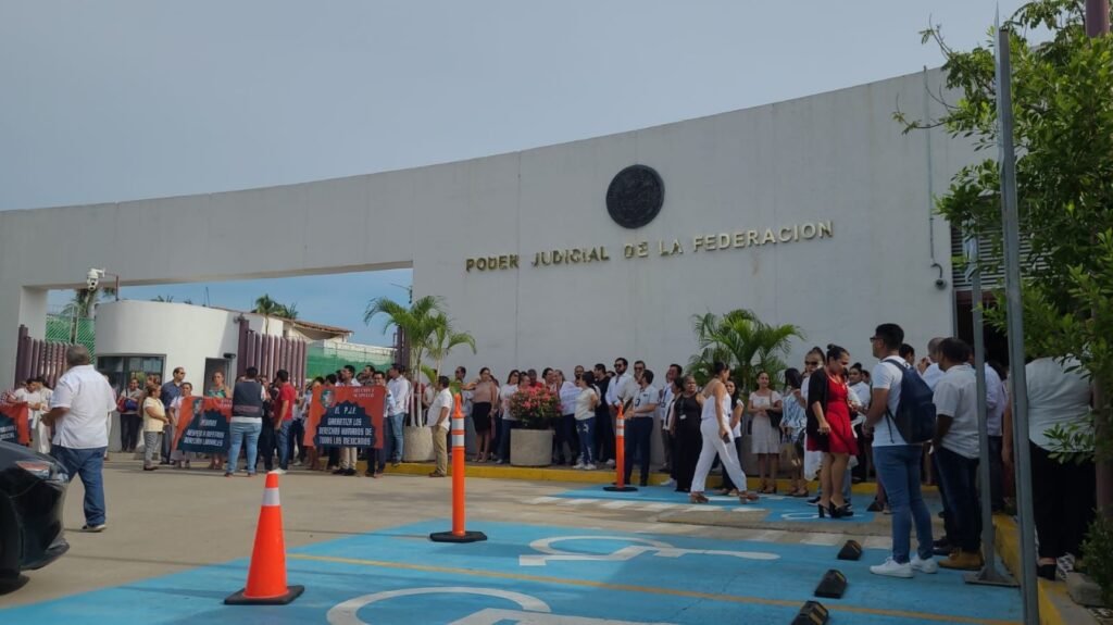 Acapulco. —Trabajadores adheridos al Sindicato de Trabajadores del Poder Judicial de la Federación (STPJF) en su sección 4, realizaron una protesta y bloqueo intermitente en el Boulevard de las Naciones que conecta al Aeropuerto y a las afueras de sus instalaciones ubicadas en la zona Diamante.