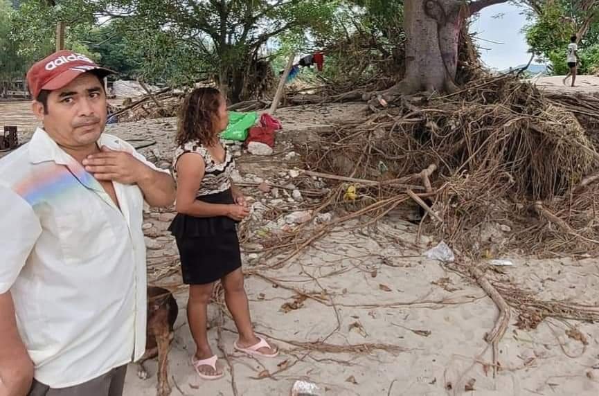TECPAN. —El matrimonio que vivió momentos de angustia durante la tormenta “Max” ha regresado al lugar donde un árbol les salvó la vida, aunque su enramada ya no está.