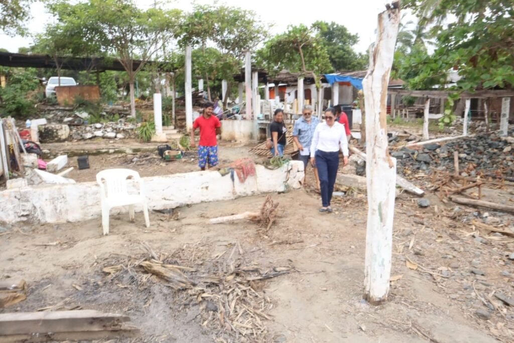Acompañada del presidente de Tecpan de Galeana, la funcionaria estatal visitó las localidades de Puerto Vicente Guerrero, Playa Boca Chica y Papanoa, donde pudo constatar las consecuencias que la tormenta Max había tenido en estas instalaciones.