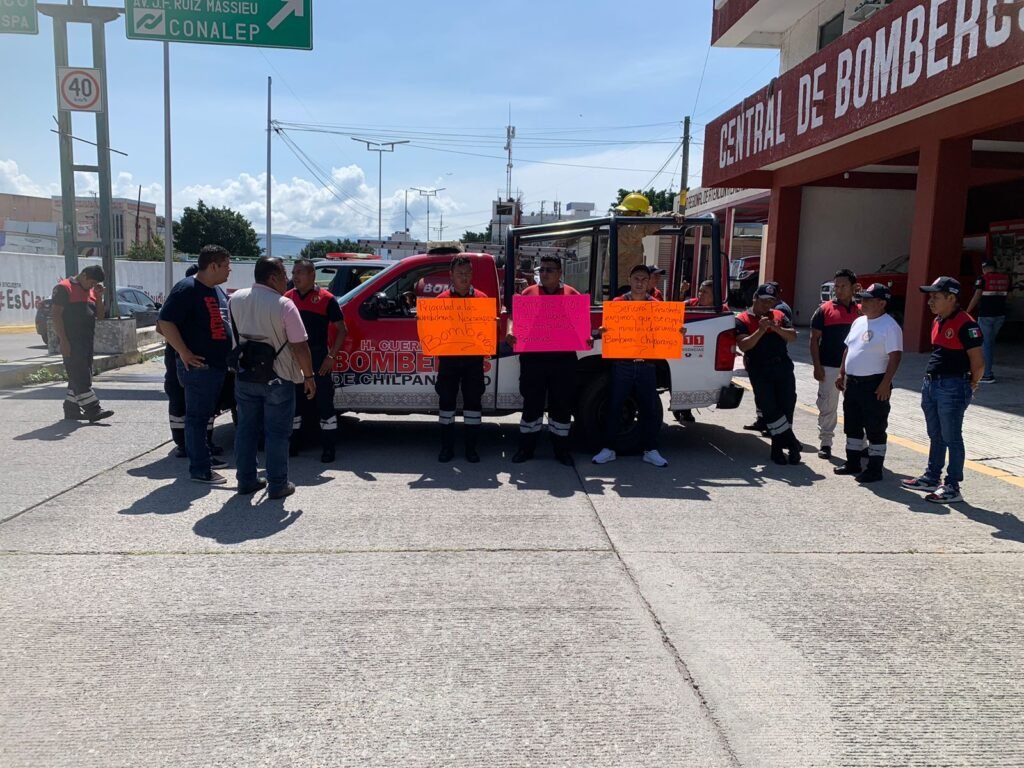 Elementos del Cuerpo de Bomberos municipales bloquearon el Bulevar René Juárez Cisneros, a la altura de su cuartel, y señalaron que se encuentran trabajando bajo protesta en demanda de cumplimiento a una minuta de acuerdos que tienen con el Ayuntamiento de Chilpancingo.Poco después de las 11:00 horas fue que comenzó la protesta de los uniformados, quienes señalaron que su principal demanda es la nivelación salarial, ya que hay algunos de ellos que reciben un sueldo muy bajo.