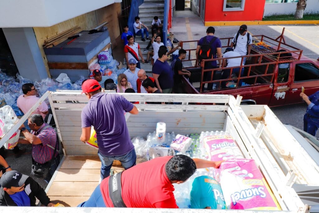 En los últimos días, la Rectoría de la UAGro con sede en Chilpancingo ha sido el Centro de Descarga de Víveres que envían las universidades del país; ahí han trabajado día y noche más de mil universitarios descargando trailers y tortons, empaquetando los productos de primera necesidad y cargando las camionetas que van a distribuir los víveres a damnificados de Acapulco y Coyuca.