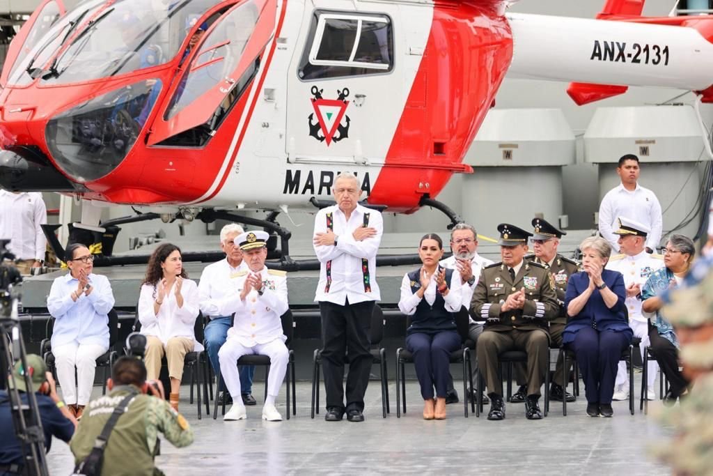 Por su parte, el secretario de Marina, José Rafael Ojeda Durán, realizó una reseña de los inicios y funciones de la Armada de México, y resaltó que la prioridad de la institución es salvaguardar la integridad de las y los mexicanos, las aguas del país, además de contribuir en las labores de seguridad que se les requiera.