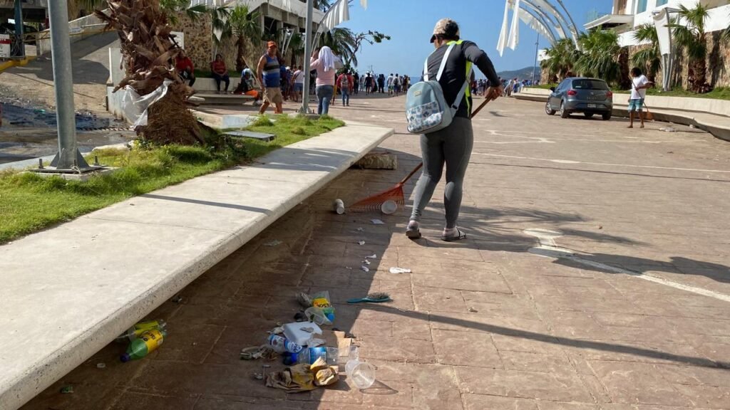 Trabajadores de la zona de playa y prestadores de servicios turísticos, realizaron este viernes una jornada de limpieza en las playas de Acapulco que aún presentan desechos tras el paso del huracán Otis.