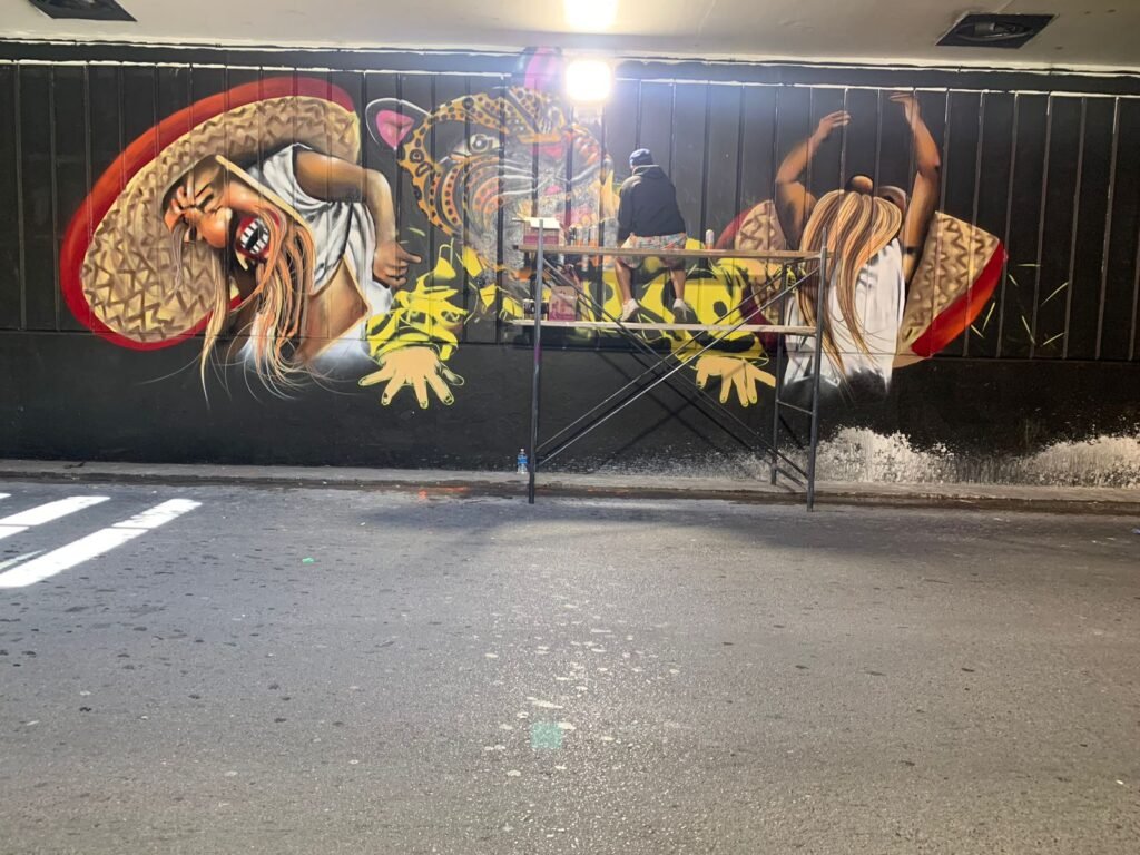 Señalo que el está plasmando a la conocida danza de los “Tecuanis” que es un referente de la cultura y el folklor en algunas regiones del estado de guerrero y trata de plasmar esa esencia en su mural el cual hace alusión a los bailes que realizan.