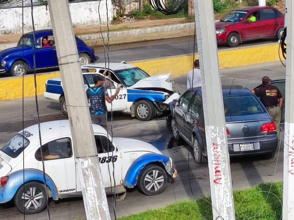 El reporte refiere que eran cerca de las 8 de la mañana cuando un taxi 027 chocó de manera frontal contra un auto de la marca Volkswagen, tipo Jetta, color gris, placas de circulación HFU-626-A.