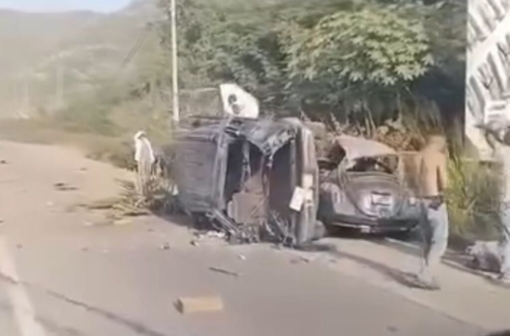 Debido al fuerte impacto, la camioneta golpeó una palmera y quedó colocada sobre su costado, mientras que el vehículo tipo “vocho”.