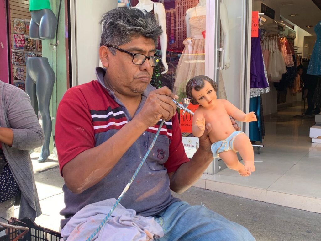 El señor Carlos Bautista, desde los 14 años aprendió a restaurar figuras de niños dios y demás santos, en dónde desde hace ya varios años ha logrado encontrar una fuente de ingresos en esta temporada decembrina.