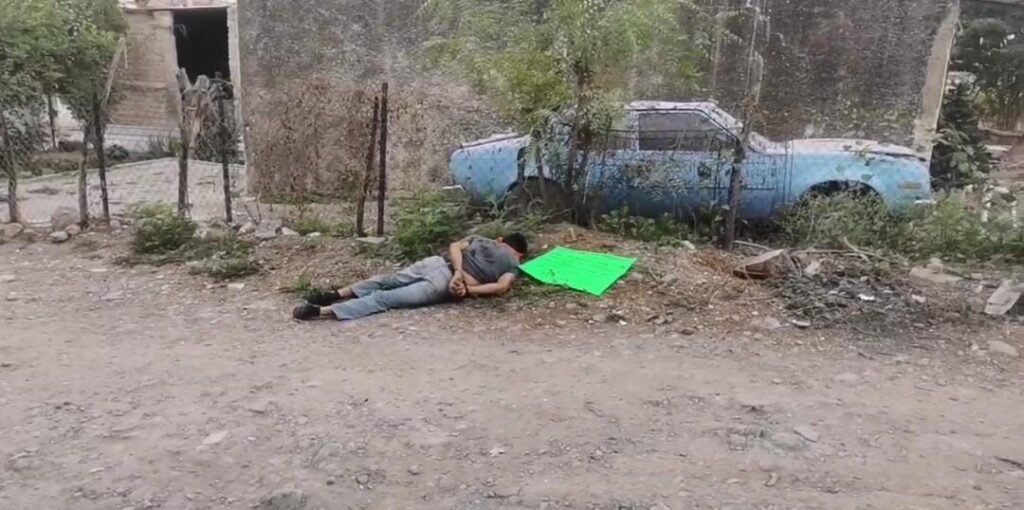 La víctima de quien se desconocen sus generales, estaba amordazado y atado con las manos hacia la espalda, también se localizó una cartulina cuyo texto se desconoce, cerca del cuerpo se localizaron al menos una docena de casquillos.