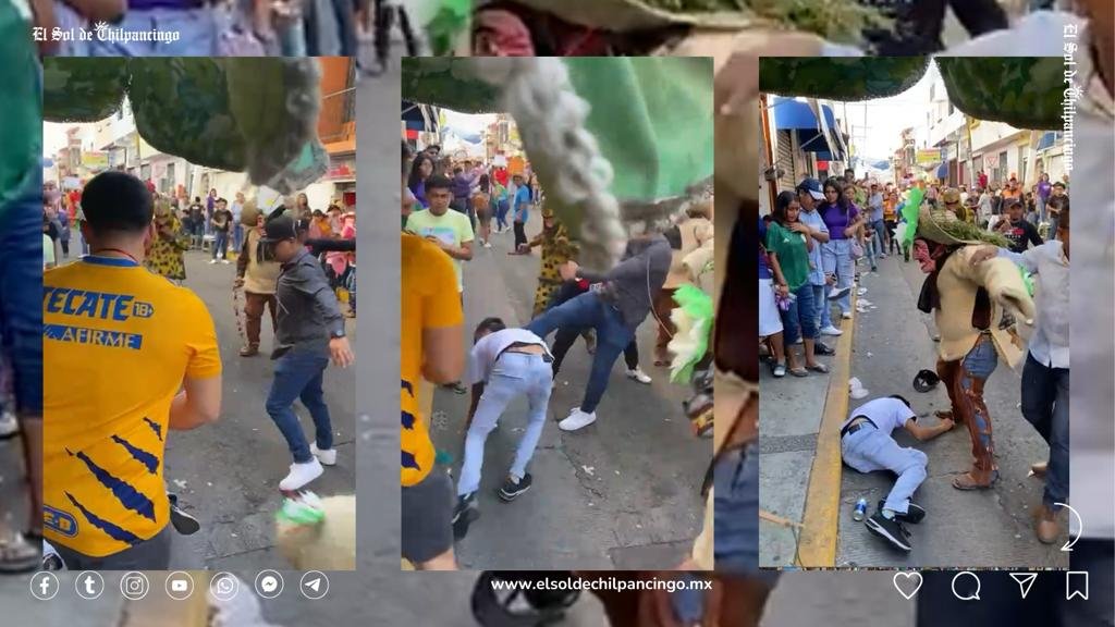 Un joven fue brutalmente golpeado, durante el paseo del “Pendón”, en la calle Ignacio Manuel Altamirano, fue golpeado por gente civil y un grupo de Tlacololeros. El incidente ocurrió sobre la calle Altamirano, casi esquina con Allende, en pleno centro de la ciudad, sobre cómo inició el pleito o la agresión se desconoce, solo circula un video en redes sociales donde se ve que el joven es golpeado y pateado en la cabeza.El joven fue trasladado, por sus familiares hasta el lugar donde ubicaron una ambulancia de Protección Civil del Estado.Ahí el joven fue atendido y luego de estabilizarlo fue entregado a sus familiares quienes se lo llevaron a su domicilio, cabe hacer mención que el herido se encontraba bajo los influjos del alcohol.
