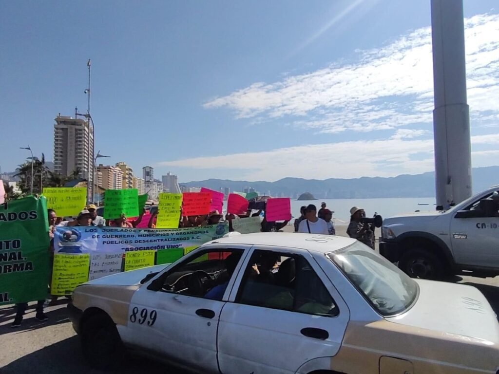 ACAPULCO. —Jubilados y pensionados de la Asociación número uno del estado bloquearon de manera intermitente la avenida Costera Miguel Alemán, en Acapulco, para exigir el pago de su aguinaldo y de diciembre.