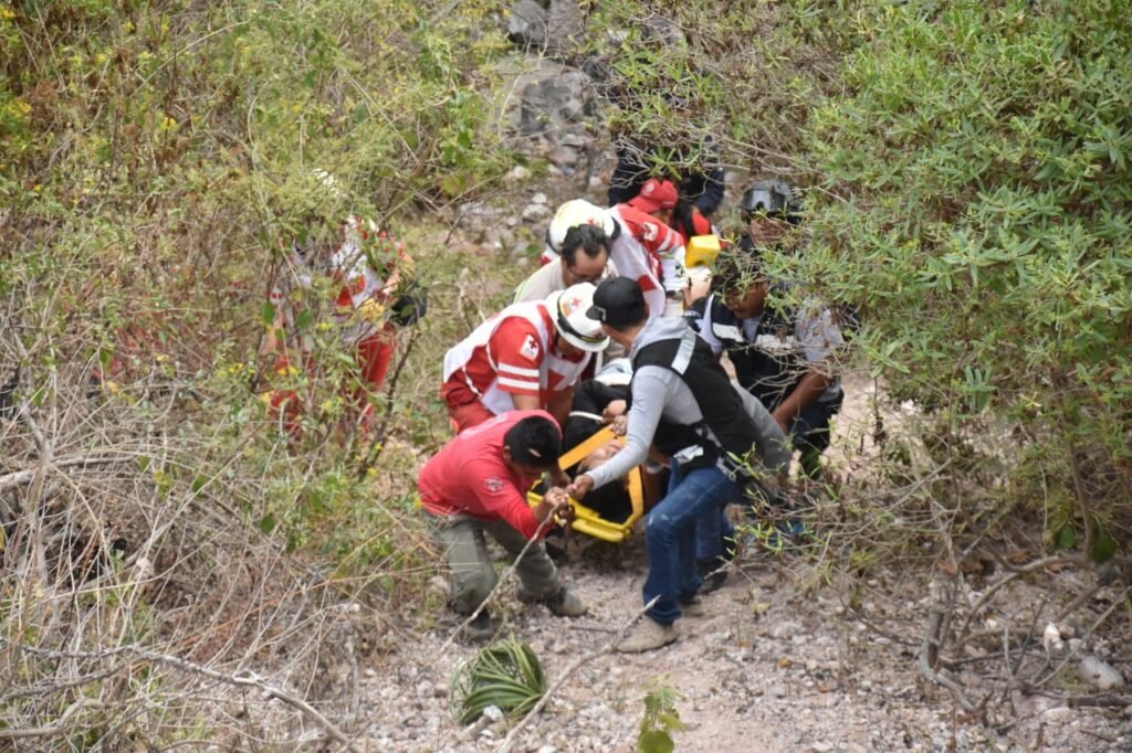 Tuvieron que llegar paramédicos de la Cruz Roja que con ayuda de reatas bajaron hasta el fondo para rescatar al herido que viajaba a bordo de una camioneta Ford 150.