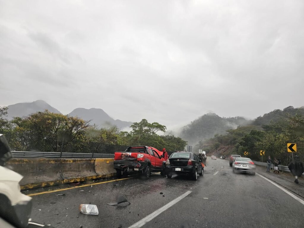 Una carambola donde se vieron involucrados 5 vehículos dejó un saldo de 2 personas lesionadas, a 5 kilómetros de la caseta de cobro de Palo Blanco, municipio de Chilpancingo, rumbo al puerto de Acapulco.