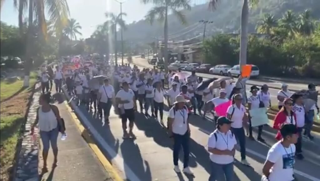 ZIHUATANEJO. —Maestros de Educación Física pertenecientes a la delegación sindical D-I-290, que abarca los municipios de Zihuatanejo, Petatlán, La Unión y Coahuayutla, se congregaron en una marcha en Zihuatanejo para demandar el respeto a sus derechos laborales.