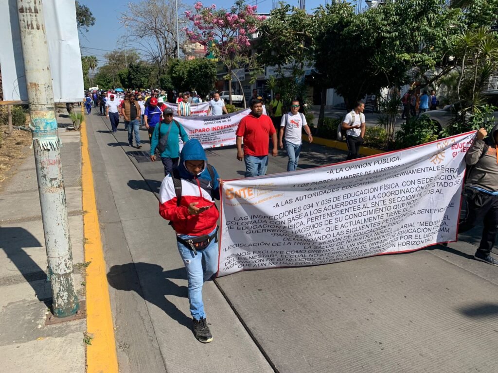 Este jueves, maestros de Educación Física marcharon en Chilpancingo para exigir ser beneficiados por la Medida de Bienestar Docente, ya que denunciaron que fueron excluidos de este beneficio.