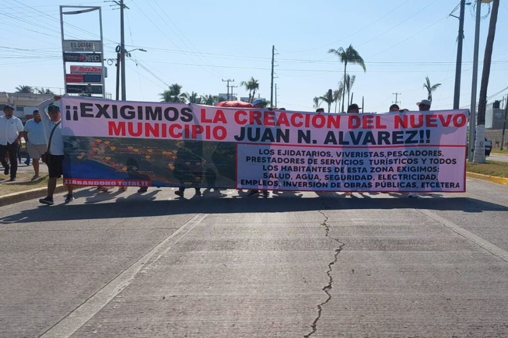 En la marcha estuvieron presentes algunos ejidatarios, prestadores de servicios, viveristas y pescadores, quienes informaron que desde hace poco más de 10 años están haciendo la solicitud de creación del municipio de Juan N. Álvarez.