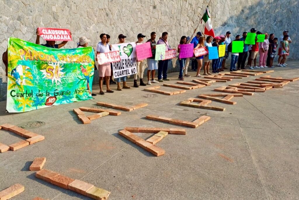 ACAPULCO. —Un grupo de ciudadanos acudió este domingo a las instalaciones del Parque Papagayo para realizar una clausura ciudadana con la finalidad de evitar se continúe construyendo el cuartel de la Guardia Nacional.