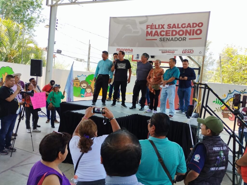 Salgado Macedonio afirmó que en su campaña “todo va muy bien, hay mucha alegría, pero sobre todo está muy politizada la campaña, antes venían por una torta, ni agua, ni en la colonia hay agua, peor hay alegría y entusiasmo”, afirmó.