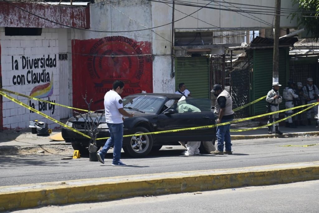 De manera inmediata, elementos de seguridad se movilizaron al lugar y localizaron un vehículo de la marca Ford tipo Mustang de color negro, abandonado en la calle y luego de una revisión; localizaron a un hombre asesinado por un torniquete.