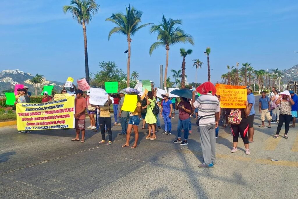 Padres de familia de las escuelas Venustiano Carranza y Fernando Montes de Oca realizaron un bloqueo en el Boulevard de las Naciones para exigir a las autoridades estatales que sus escuelas sean rehabilitadas luego de sufrir afectaciones tras el paso del huracán Otis.