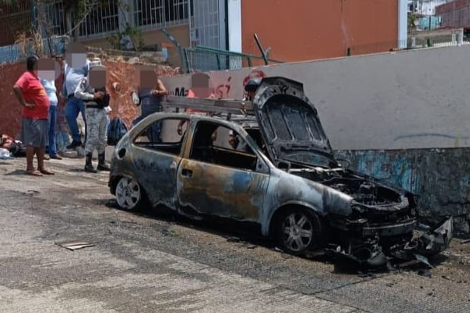 Al mediodía de este viernes fue reportado el incendio de un vehículo compacto en la calle Palma Sola del puerto de Acapulco.