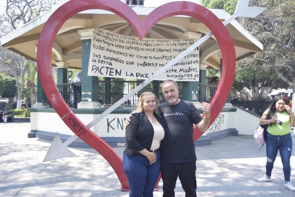 Acompañada por el activista Adrián Lebaron, Ceci Flores colocó una manta en el kiosco de Chilpancingo, Guerrero, donde pidió a los grupos criminales del país a pactar una tregua y así llegar a la paz en medio del caos que azota a las familias mexicanas.