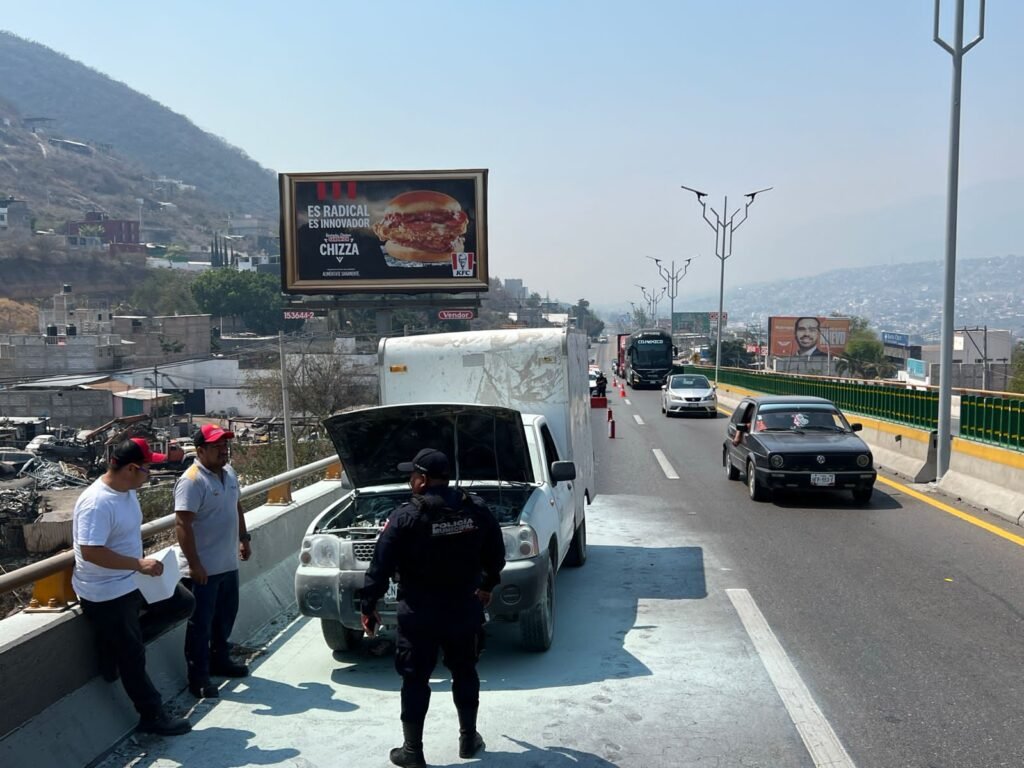 Una camioneta sufrió el incendio parcial del motor cuando circulaba sobre el carril sur-norte justo arriba del puente elevado del crucero hacia Chichihualco, al norte de la capital.