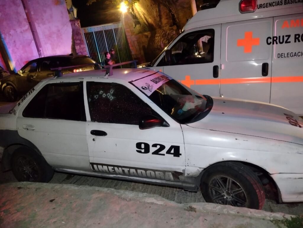 En el lugar localizaron un taxi de color blanco de ruta alimentadora, tipo Tsuru, de la marca Nissan, con siete disparos de arma de fuego en el cristal donde viaja el copiloto.