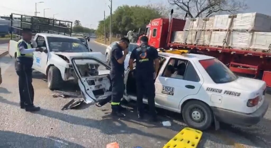 El hecho se suscitó poco antes de las 8:30 horas de este día, cuando ambos conductores se encontraron de frente lo que provocó que el taxista que conducía el vehículo marca Nissan tipo Tsuru color blanco, número económico 0810 quedara prensado.
