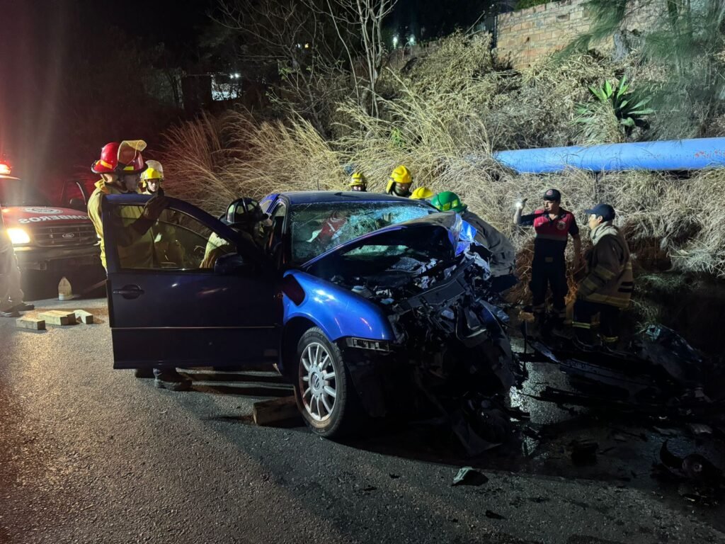 En el Jetta color azul cuarta generación viajaba un hombre que quedó prensado, inconsciente y con las piernas atrapadas.