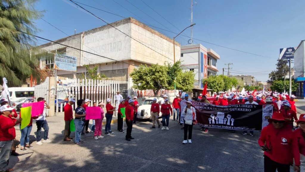 Durante el recorrido, los trabajadores recibieron muestras de apoyo por parte de los empleados de la Clínica de la UAGro, quienes están en paro desde la semana pasada exigiendo la destitución de su encargada, Isis Kristal Astudillo Salas.