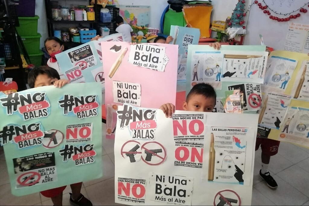 Fue en diciembre de 2022 cuando estudiantes del jardín de niños “Miguel Hidalgo y Costilla” ubicado en la colonia Guadalupe Victoria del puerto de Acapulco, emprendieron una campaña dirigida a la población para no festejar las fiestas decembrinas con disparos al aire.