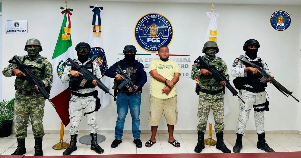 ACAPULCO. —La Fiscalía General del Estado de Guerrero, a través de la Unidad Antiextorsión de Acapulco en coordinación con el Ejército, la Guardia Nacional y la Secretaría de Seguridad Pública Estatal, la tarde de ayer logró la captura de Víctor Hugo “N”, alias “El Aguado”, identificado como jefe de plaza en la zona oriente de Acapulco, perteneciente a la célula criminal “Los Rusos”, quien era un objetivo prioritario de la autoridad, y el cual contaba con una orden de aprehensión activa en su contra por el delito de extorsión agravada.