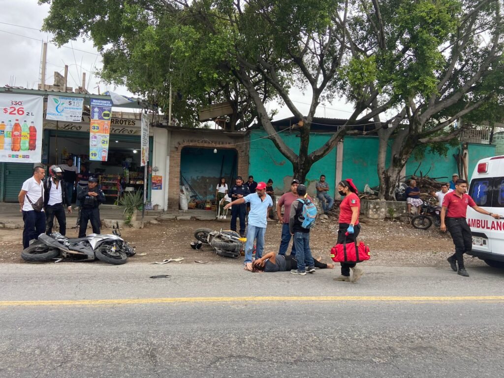 Un choque entre dos motocicletas, ocurrido la mañana de este jueves sobre la carretera federal Iguala-Taxco, en la comunidad de El Naranjo, municipio de Iguala, dejó el saldo de cuatro lesionados, dos de ellos de gravedad.