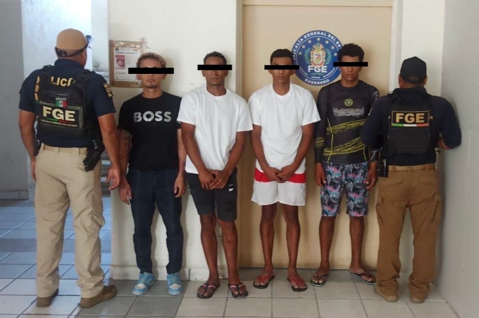 La Fiscalía General del Estado de Guerrero (FGE), en coordinación con la Policía Estatal, el Ejército Mexicano y la Guardia Nacional, detuvo a cuatro presuntos integrantes de un grupo delictivo en Acapulco. Durante el operativo, realizado la tarde del domingo, se aseguró posible droga y un vehículo.