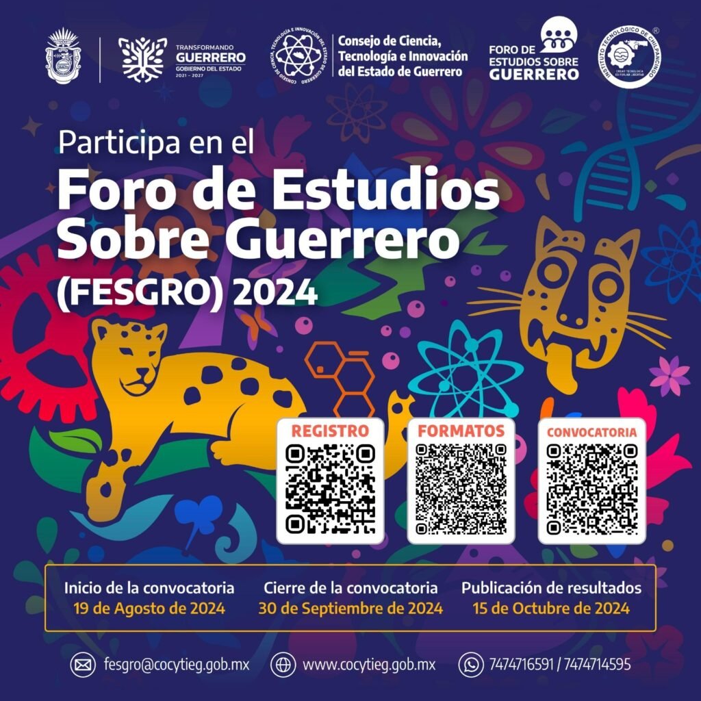 El registro para participar en el foro está disponible a través del enlace https://www.fesgro.cocytieg.gob.mx/login y la fecha límite de recepción de trabajos es el 30 de septiembre de 2024.