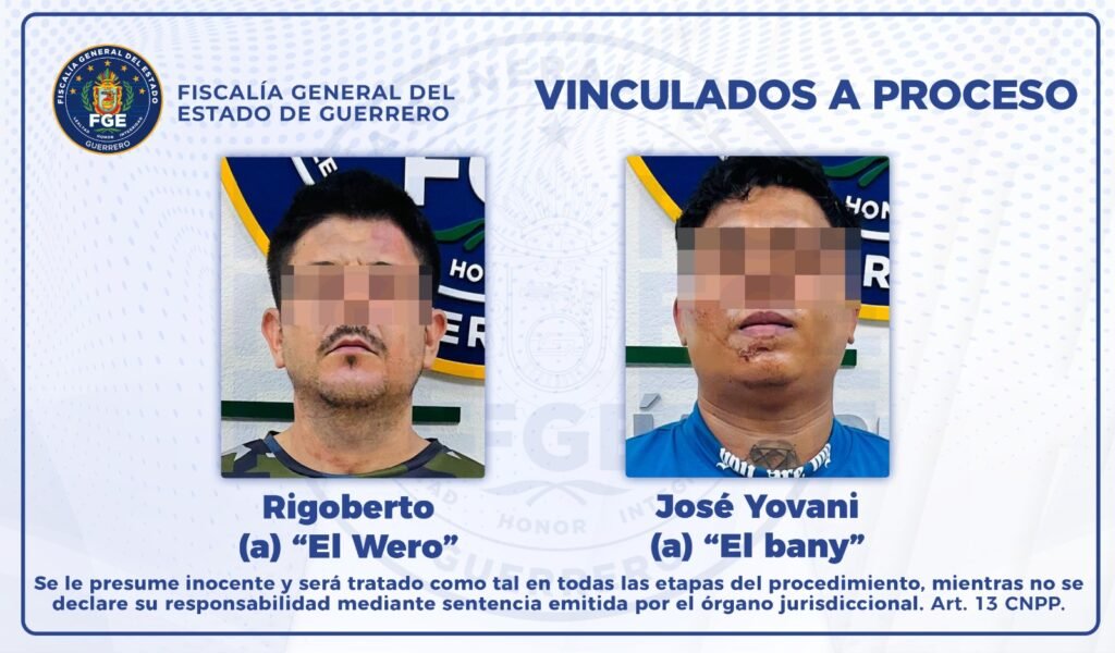 La Fiscalía General del Estado de Guerrero vinculó a proceso a Rigoberto “N”, alias “El Wero”, y a José “N”, alias “El Bany”, presuntos integrantes del grupo delictivo “Los Totos”, por los delitos de privación de la libertad y homicidio en grado de tentativa.