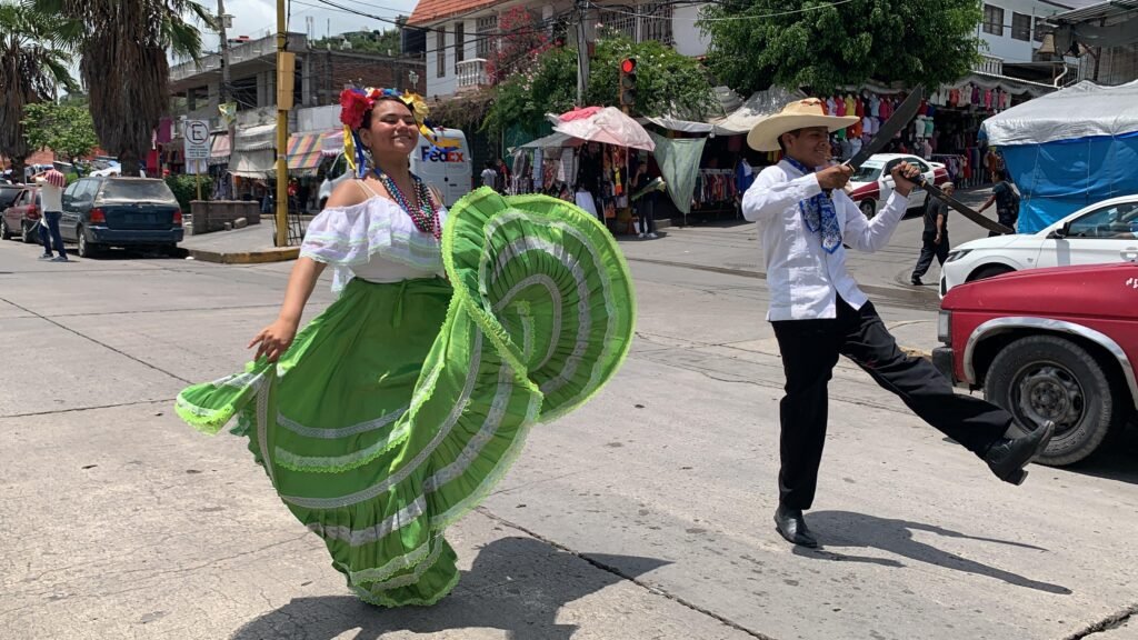 Un grupo de estudiantes de danza Folklórica y de la licenciatura en artes, provenientes del estado de Puebla, presentan bailables en los semáforos de Chilpancingo, para que los automovilistas les den una moneda y ellos puedan seguir costeando sus estudios.