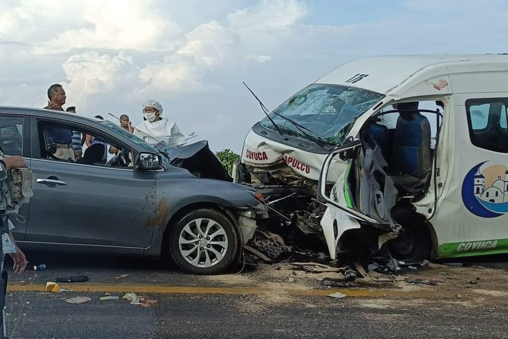 ACAPULCO. —Dos personas murieron y cerca de 11 personas resultaron lesionadas luego de un choque frontal entre un vehículo particular y una urvan del servicio público cuando circulaban sobre la carretera federal Acapulco-Zihuatanejo.