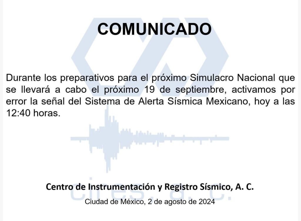 Dicho error se dio debido a los preparativos que realizan para el próximo simulacro nacional a realizarse el 19 de septiembre en toda la República Mexicana.