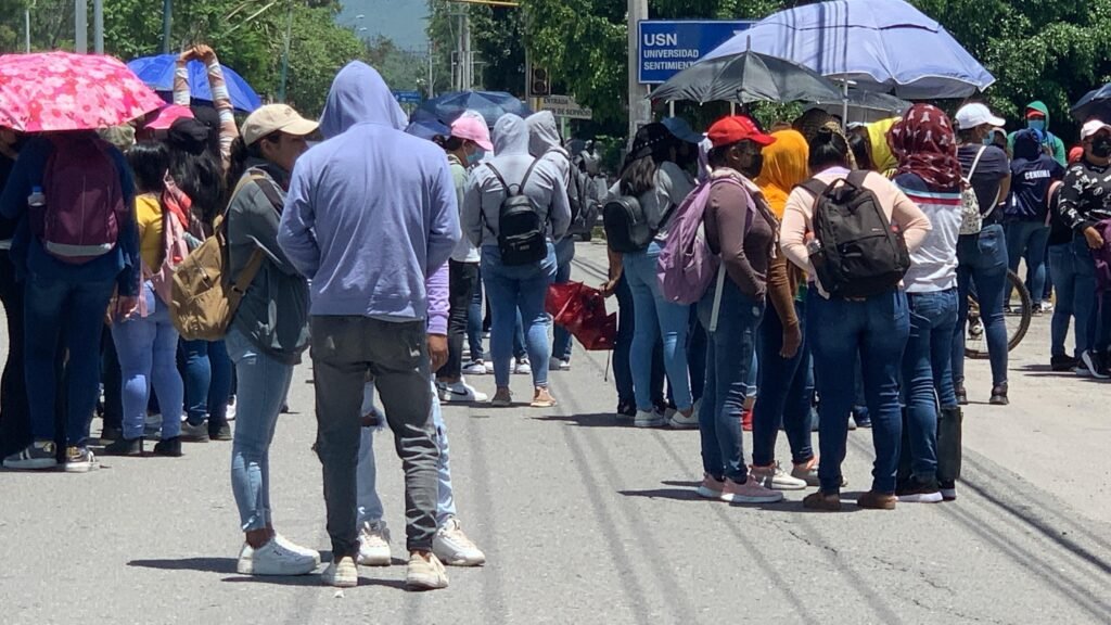 Un grupo de aproximadamente 50 egresados de las diferentes normales, UPNS y CAMS de las generaciones 2023 y 2024 bloquearon la lateral del bulevar Vicente Guerrero, a la altura de la tienda Sam’s Club, al sur de la ciudad, para exigir la asignación de plazas.