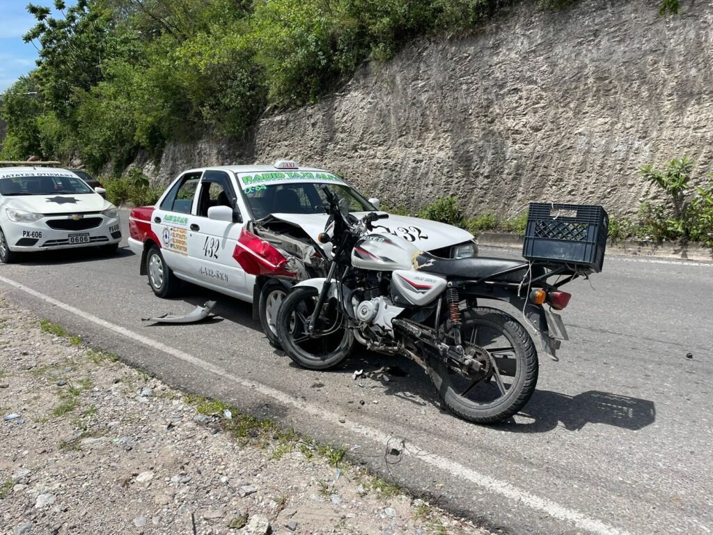 El conductor de una motocicleta que circulaba por la vía Chilpancingo-Amojileca, resultó lesionado luego de chocar contra una unidad del servicio público.