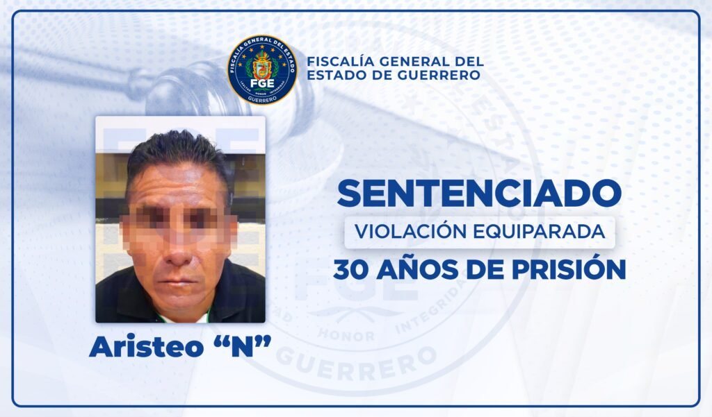 La Fiscalía General del Estado de Guerrero logró que un Juez sentenciara a 30 años de prisión a Aristeo “N” por el delito de violación equiparada en perjuicio de una víctima menor de edad de identidad reservada, hechos ocurridos en Acapulco.